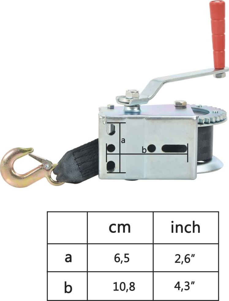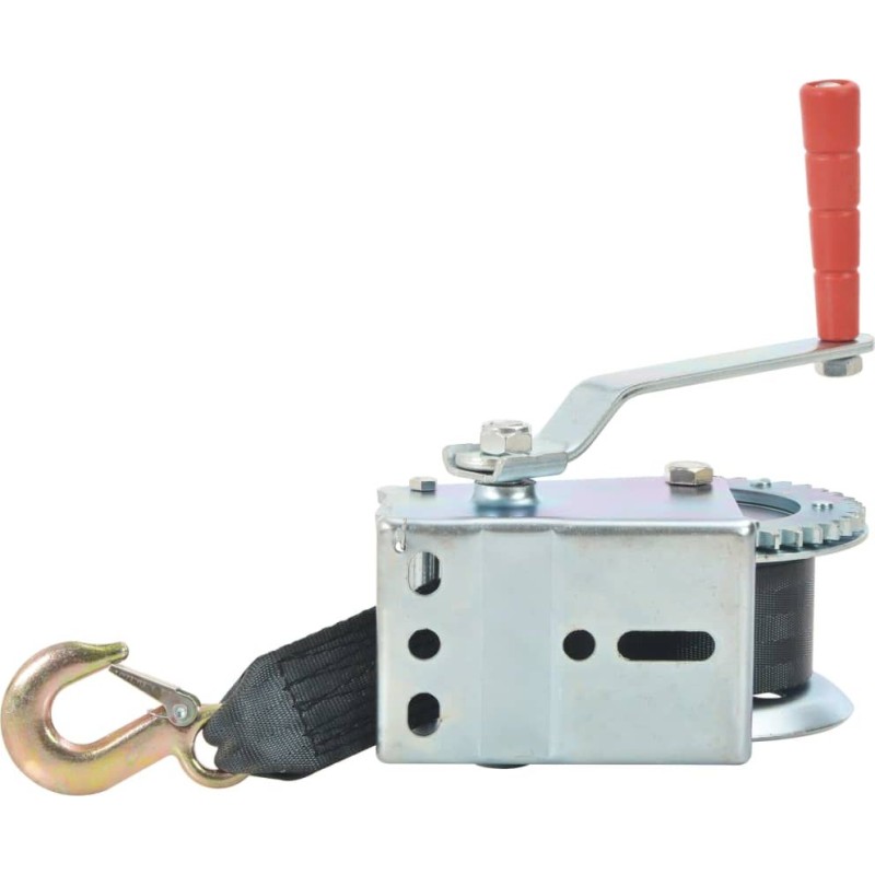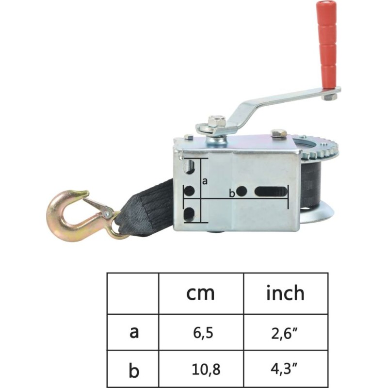 Diese Handwinde mit Gurtband eignet sich ideal zum Anheben von Fahrzeugen und Anhängern sowie für andere Anwendungen. In unserem Shop finden Sie einen passenden Halter zur Montage der Winde auf einem Boot (SKU 90634), mit dem Sie das gesamte Set vervollständigen können.