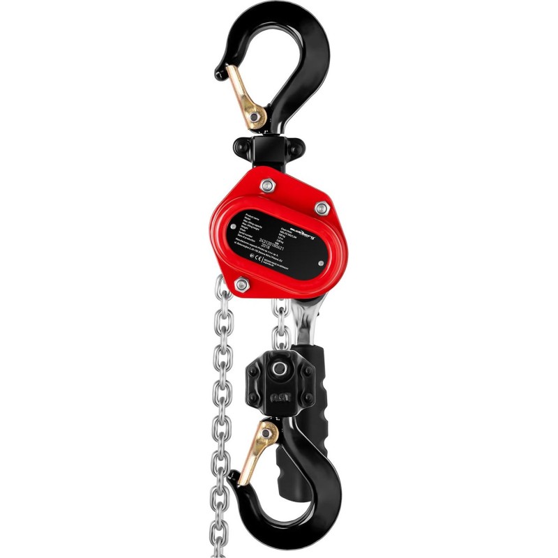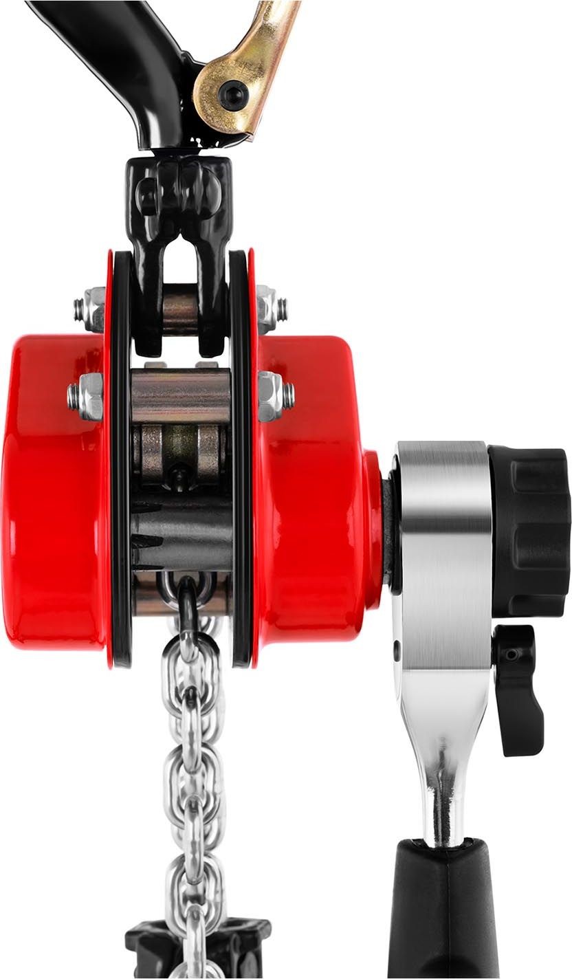 Mit dem manuellen Kettenzug können Gegenstände mit einem Gewicht von bis zu 500 kg auf eine Höhe von bis zu eineinhalb Metern angehoben werden. Dank der robusten Ketten (Typ G80, Glieder mit 4 mm Durchmesser) und der Fertigung der Bauteile aus hochwertigem Stahl ist die Arbeit mit dem Modell SBS-FZ 500/1,5M sehr sicher. Dazu tragen auch die mit Nylon beschichtete Spitze der Steuerwelle sowie eine Arretierung bei, die es ermöglicht, die Last in der gewünschten Höhe zu halten.