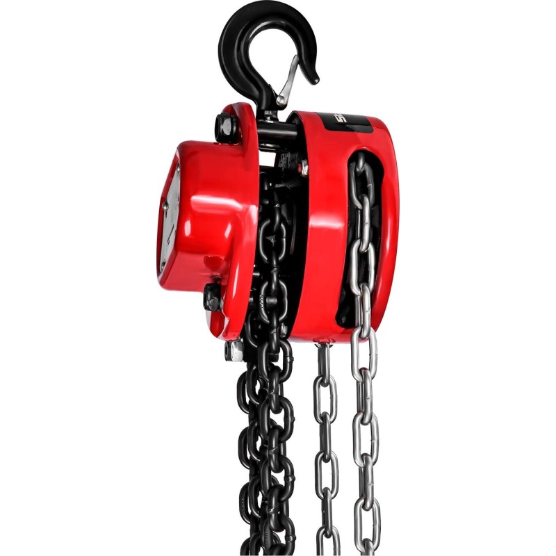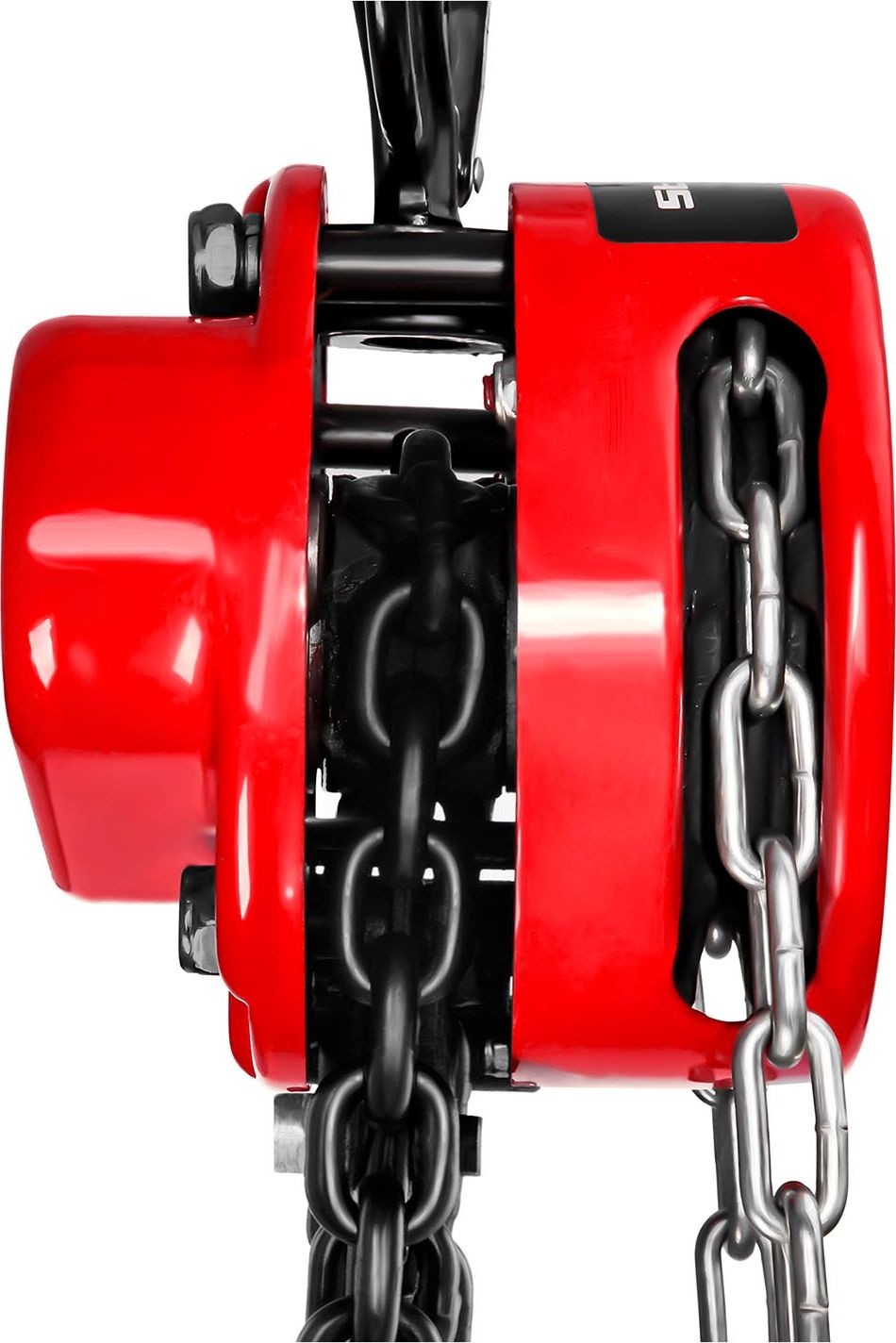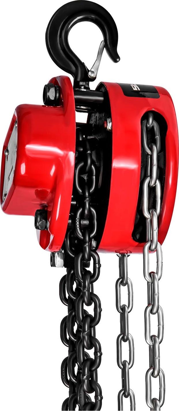 Mit dem manuellen Kettenzug lassen sich Gegenstände mit einem Gewicht von bis zu 3000 kg auf eine Höhe von bis zu zwölf Metern heben. Dank der robusten Ketten (Typ G80, Glieder mit 8 mm Durchmesser) und der Fertigung der Bauteile aus hochwertigem Stahl ist die Arbeit mit dem Modell SBS-FZ 3000/3GM sehr sicher. Dazu trägt auch der Sicherheitsmechanismus bei, der den Betrieb des Geräts stoppt, sobald die Kette losgelassen wird.