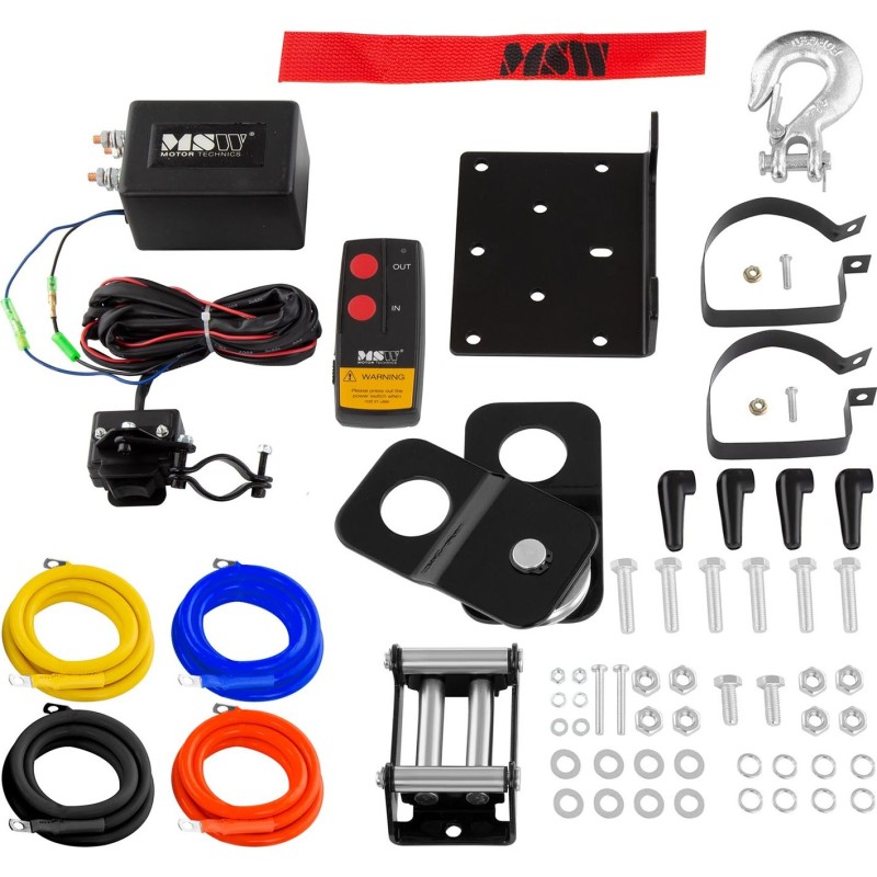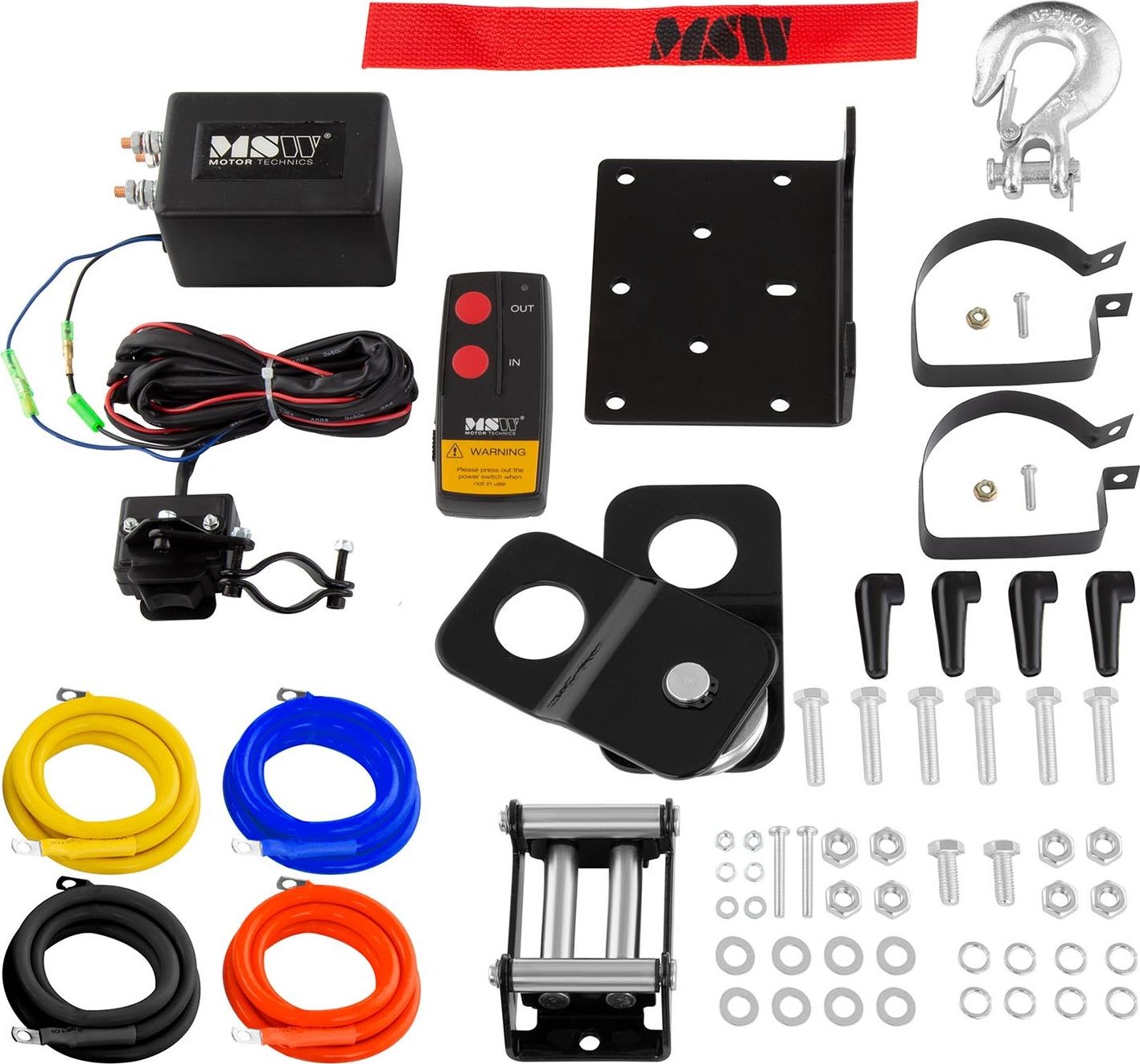 MSW Offroad-Seilwinde für Autos mit Fernbedienung, 15 m Seillänge, Zugkraft 2040 kg + 4-Tonnen-Block