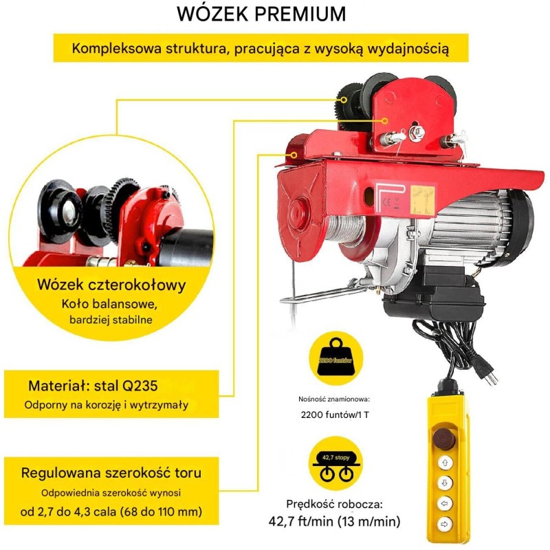 - Lieferumfang: 1 x elektrische Winde, 1 x Wagen