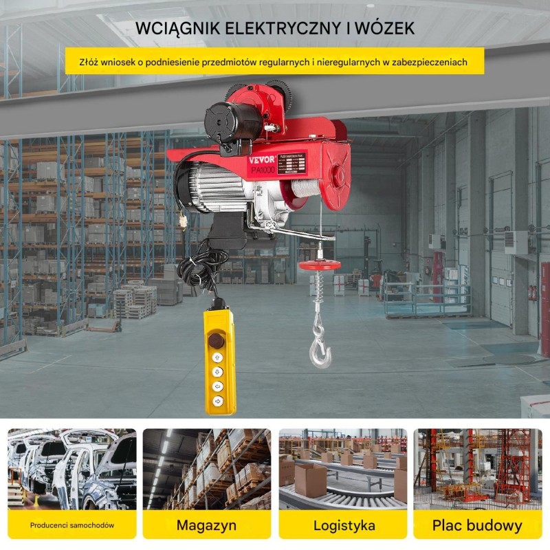 Die elektrische Seilwinde mit einer Tragkraft von 1000 kg ist ein äußerst vielseitiges Produkt, das sich in verschiedenen Situationen hervorragend bewährt. Ideal zum Heben vielfältiger Gegenstände wie kleiner Motoren, Getriebe, großer Werkstattwerkzeuge oder Baumaterialien, garantiert diese Winde Zuverlässigkeit und Effizienz bei jeder Arbeit.