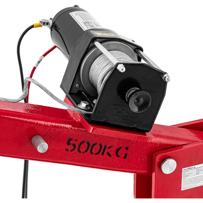 - - Die 12-V-Seilwinde hebt Lasten bis zu 500 kg und mit der Seilrolle bis zu 800 kg,