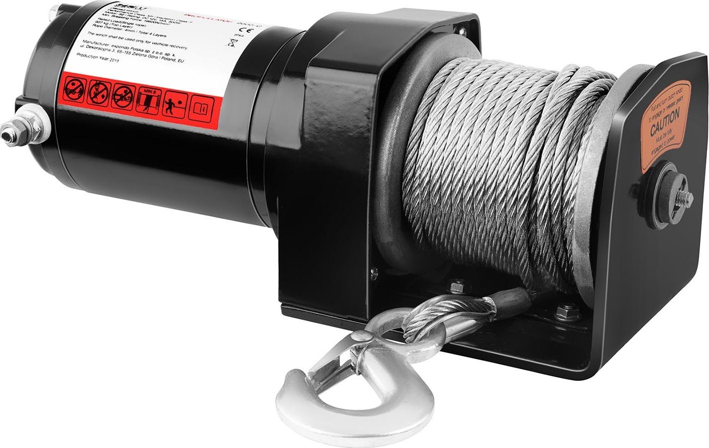Der 1-PS-Motor (750 W) erreicht zusammen mit der großen Trommel, dem Magneten (bürstenlose Bauweise) und dem robusten Stahlseil eine Zugkraft von 2000 lbs (907 kg). Dies ermöglicht das schnelle und einfache Befreien eines Fahrzeugs aus einem Graben oder einem anderen Geländehindernis. Die Montage der Seilwinde wird durch die Verwendung einer speziellen Montageplatte erleichtert.
