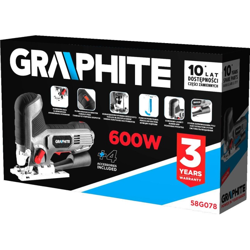 Graphite-Stichsäge (600 W, Hubzahl 800–3000 U/min, mit Griff am Gehäuse)