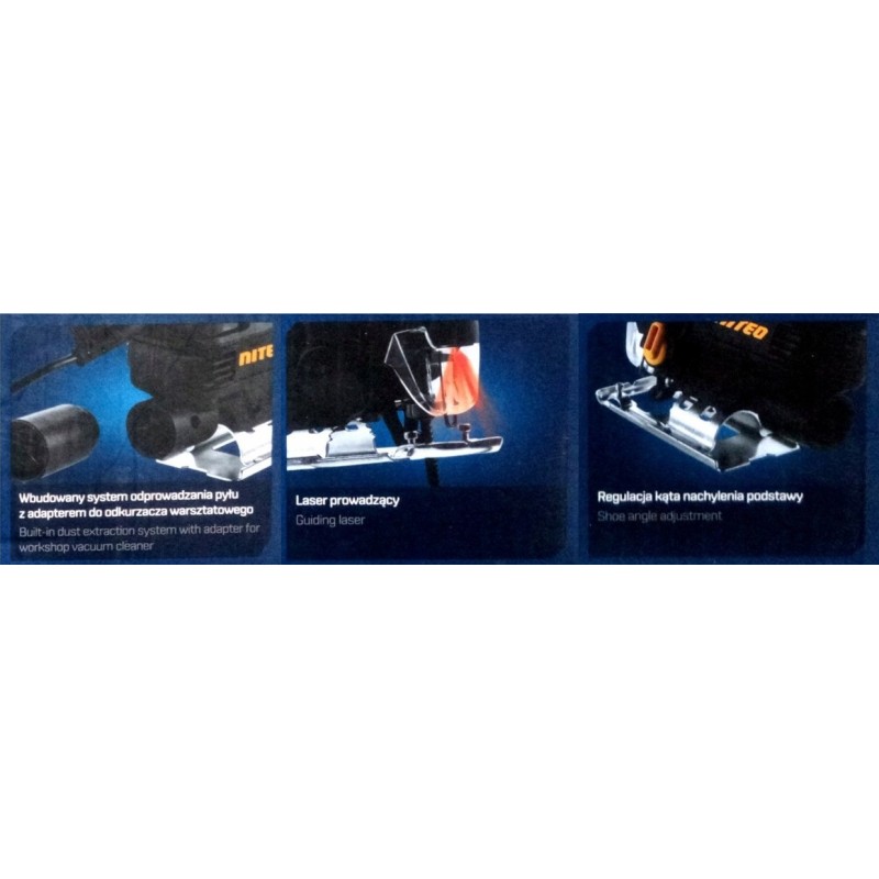 Die elektrische Stichsäge mit Laser 710 W von NITEO ist eine hervorragende Wahl für alle, die gerne zu Hause renovieren und reparieren! Die hohe Leistung des Geräts ermöglicht die Ausführung vieler verschiedener Aufgaben. Die Stichsäge mit Laser ermöglicht eine präzise Linienführung, und dank der Schnittwinkelverstellung lassen sich die entsprechenden Parameter je nach Art der Arbeit anpassen. Der rutschfeste Griff sorgt für zusätzlichen Bedienkomfort. Das Werkzeug ermöglicht den Anschluss eines externen Staubabsaugsystems.