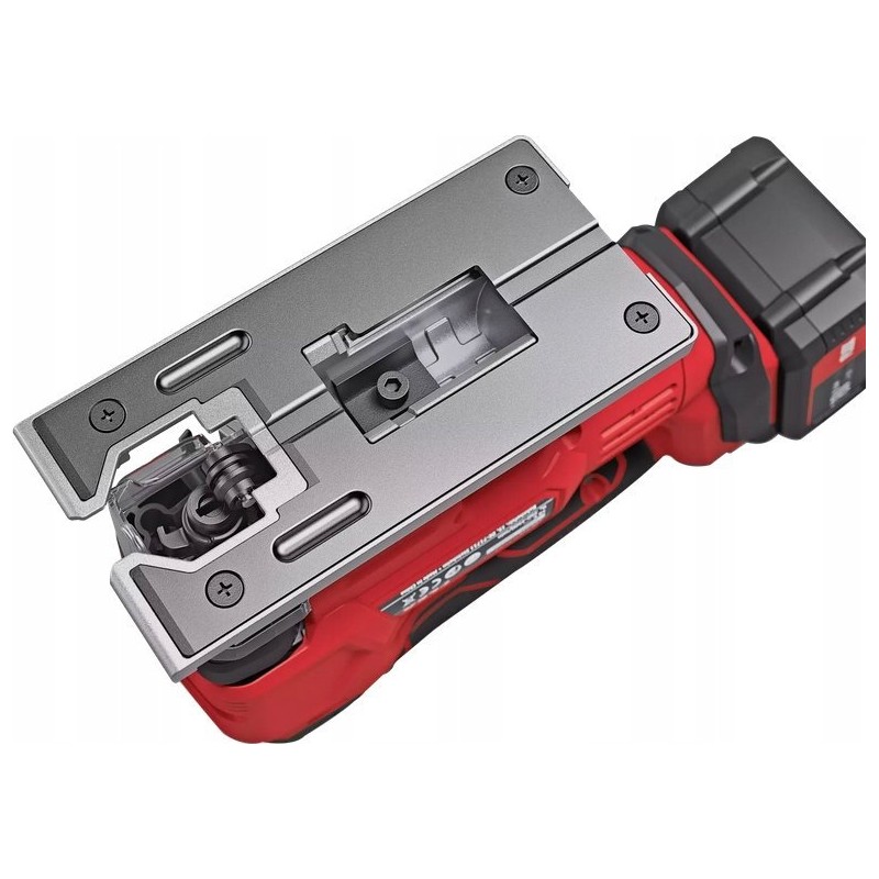 - Der Führungsfuß ist mit einer abnehmbaren Kunststoff-Gleitabdeckung zum Schutz empfindlicher Oberflächen ausgestattet