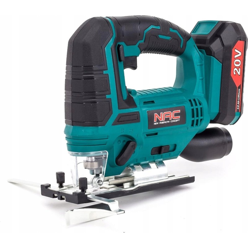 Die Akku-Säge NAC JS-20-LI-ST-20V ist zum Schneiden, Aussägen und Aufschneiden von Metall, Aluminium und Holz bestimmt. Sie kann mit einem Lithium-Ionen-Akku mit einer Kapazität von 2 Ah oder 4 Ah betrieben werden, der über eine Ladeanzeige verfügt.