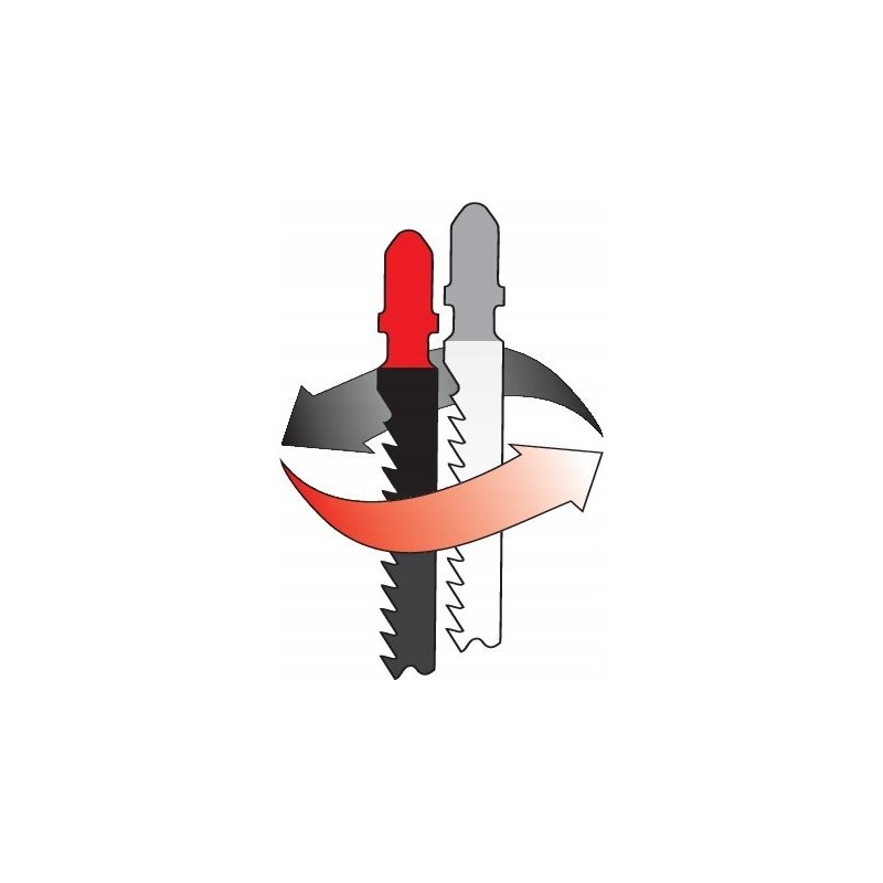 Die Stichsäge arbeitet mit Standard-Sägeblättern vom Typ T, 2 Stück im Lieferumfang enthalten