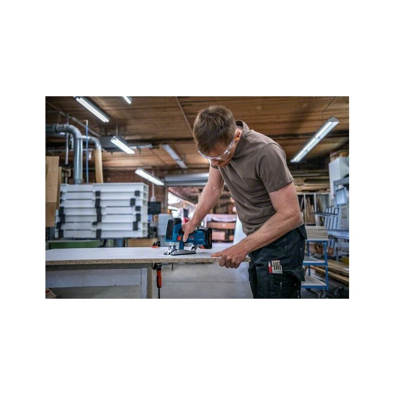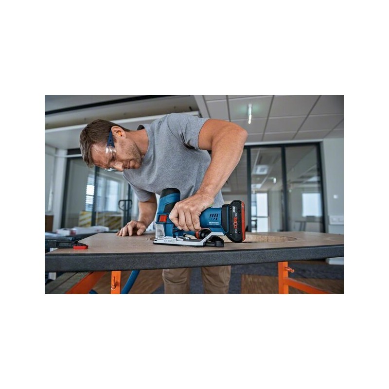 - Die GST 18V-155 SC Professional (mit Stabgriff) verfügt über einen bürstenlosen Motor und eine gut ausbalancierte Werkzeugkonstruktion.