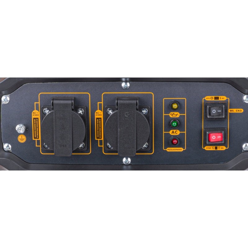 Der Generator erzeugt Strom mit einer Spannung von 230 V (2 Steckdosen). Die ideale Lösung, wenn auf dem Grundstück oder im Gelände kein Stromanschluss vorhanden ist. Ausgestattet mit einem Voltmeter und Sicherheitsvorrichtungen. Der Generator verfügt über einen Ölstandssensor, der den Motor bei zu niedrigem Ölstand automatisch abschaltet. Der Start des Generators erfolgt manuell über ein Seil. Der Generator wird im Handwerk, im Bauwesen auf Grundstücken und in Gärten zur Versorgung von Elektrowerkzeugen, Pumpen und Beleuchtung eingesetzt.