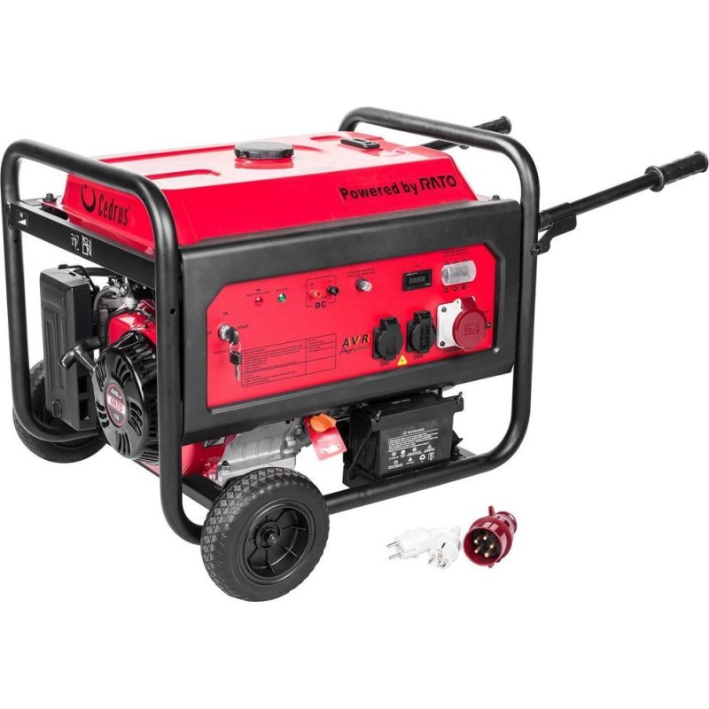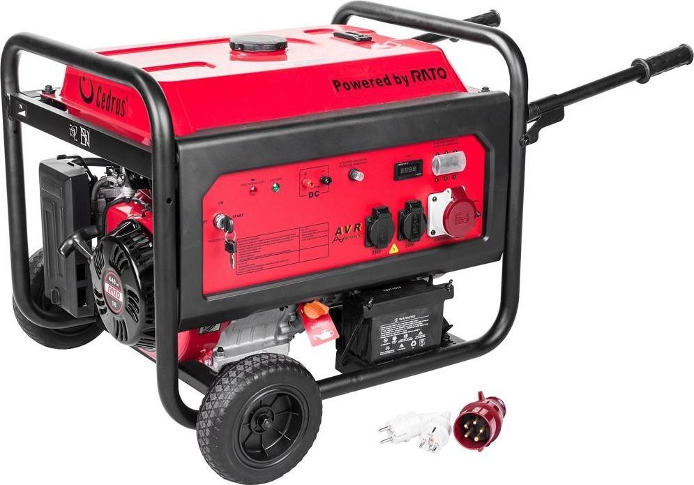 Stromaggregat Cedrus AG7E-3F Cedrus mit einer Leistung von 6800 W. Der Stromgenerator mit einem Rato-Motor mit 16 PS und einem Hubraum von 440 cm³ ist mit einem automatischen System zur Erkennung eines niedrigen Ölstands ausgestattet, das das Aggregat abschaltet. Der Drehstromgenerator liefert eine hohe Leistung und eine Spannung von 400 V. Unsere neuen Generatoren wurden für einen vielseitigen Einsatz entwickelt. Wir haben in ihnen zuverlässige und bewährte Rato-Motoren verbaut. Ein speziell entwickelter Generator mit Kupferwicklung garantiert einen zuverlässigen Betrieb. Das AVR-System sorgt für Spannungsstabilisierung, um die angeschlossenen Verbraucher vor Spannungsschwankungen zu schützen. Ein Ölsensor schaltet das Aggregat bei niedrigem Ölstand ab und schützt so den Motor vor einem Festfressen. Zusätzlich sind unsere Aggregate mit Sicherungen für die Stromkreise ausgestattet.