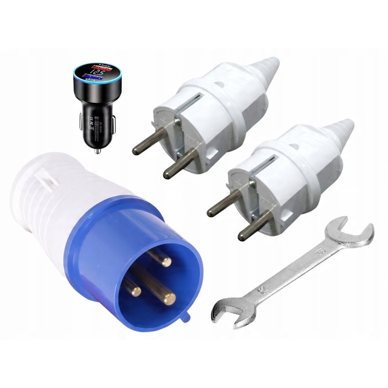 - Anzahl der 1-phasigen Steckdosen: 3 (2x Schuko 230 V, 1x CEE 230 V 32 A)