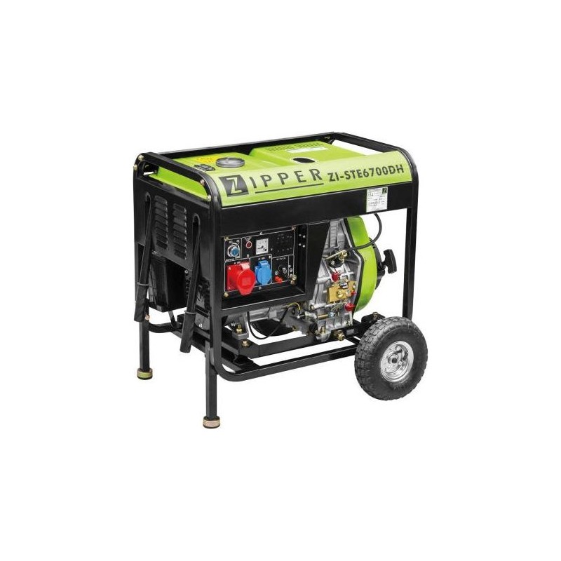 Zipper ZI-STE6700DH. Nennleistung: 5700 W, Nennspannung: 230 V, Fassungsvermögen des Benzintanks: 12,5 l. Fassungsvermögen des Öltanks: 1,65 l, Anzahl der Räder: 2 Stück, Produktfarbe: Schwarz, Hellgrün. Produktgewicht: 115 kg, Produktbreite: 740 mm, Produkttiefe: 500 mm