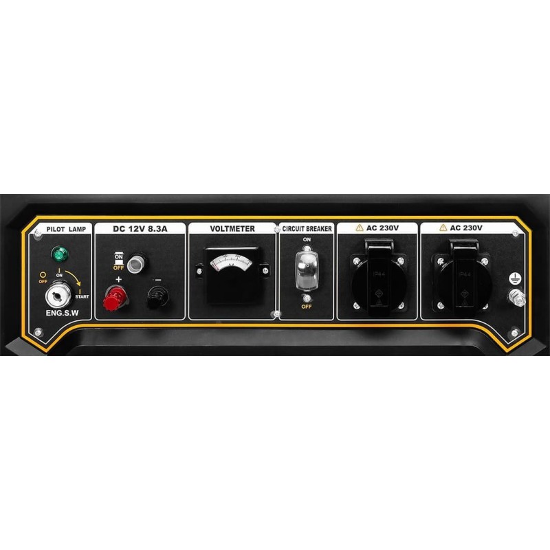 Hochwertiger Stromgenerator zur Versorgung verschiedener elektrischer Geräte an Orten ohne Netzanschluss. Leistung: 2800 W/3000 W, 1 x 12 V + 2 x 230 V, Steckdose 1 x 12 V + 2 x 230 V (16 A), Benzinmotor 5,1 kW/8,16 PS, Tank 15 l, durchschnittlicher Kraftstoffverbrauch 2,63 l/h, minimaler Kraftstoffverbrauch 313 g/kW·h, Abmessungen (LxBxH) 725x465x450 mm, LwA= 96 dB, Öl SAE-15W-30, Motorölbehälter 0,6 l, Kraftstoff 92, 95, 98, 7 HP, Gewicht 45 kg, EURO V, AVR, IP 23M, 12 A, Zündkerzentyp F6RTC, Drehzahl 3000 U/min, Hubraum 208 cm³