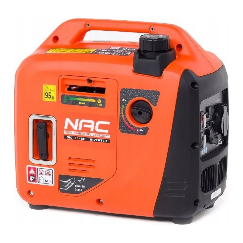 Der leichte, tragbare einphasige Inverter-Stromgenerator NAC GIG-11-SE mit einer maximalen Leistung von 1200 W ist für die Erzeugung von Wechselstrom und die Versorgung von elektrischen Verbrauchern mit 230 V vorgesehen, überall dort, wo keine anderen Stromquellen vorhanden sind, sowie für den Notbetrieb bei Ausfall des Stromnetzes.