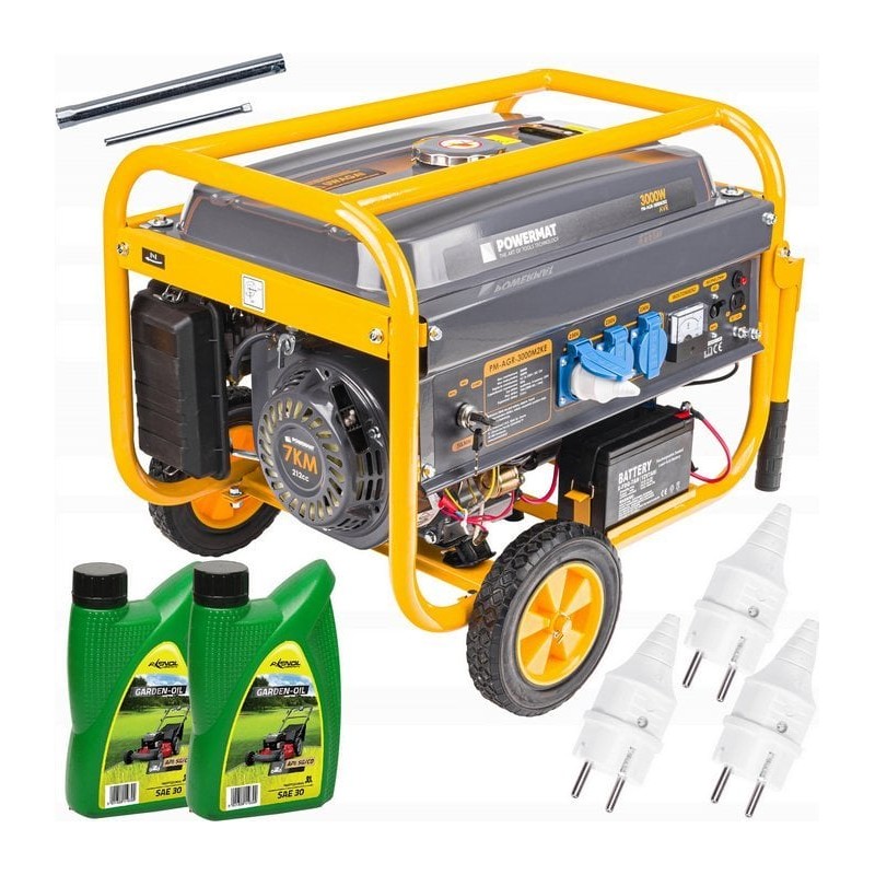 STROMGENERATOR 7 PS 230 V 3000 W + Räder + Akku + 2x ÖL 0,6 l