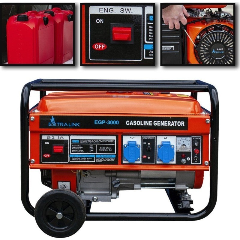 Speziell entwickelt, um eines der wertvollsten Werkzeuge zu Hause oder am Arbeitsplatz zu sein. Mit einer Leistung von 3 kW ist ein Stromausfall kein Problem mehr. Benzin-Stromaggregate eignen sich ideal zur Stromversorgung verschiedener Geräte, auf dem Campingplatz oder zu Hause. Dieser Generator mit einer maximalen Leistung von 3000 W und einer Nennleistung von 2800 W läuft bis zu 11 Stunden bei 100 % Auslastung! Der Benzingenerator Extralink EGP-3000 wird zu Ihrer zuverlässigen Stromquelle bei Stromausfall.