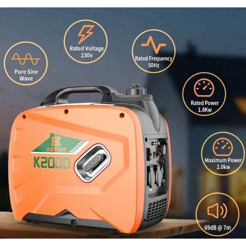 Der Stromgenerator Kepism 2000 ist die ideale Lösung für alle, die keine herkömmliche Stromquelle haben. Das Gerät basiert auf einem Inverter-Motor und eignet sich daher besser für die Stromversorgung elektronischer Geräte als herkömmliche Stromgeneratoren.