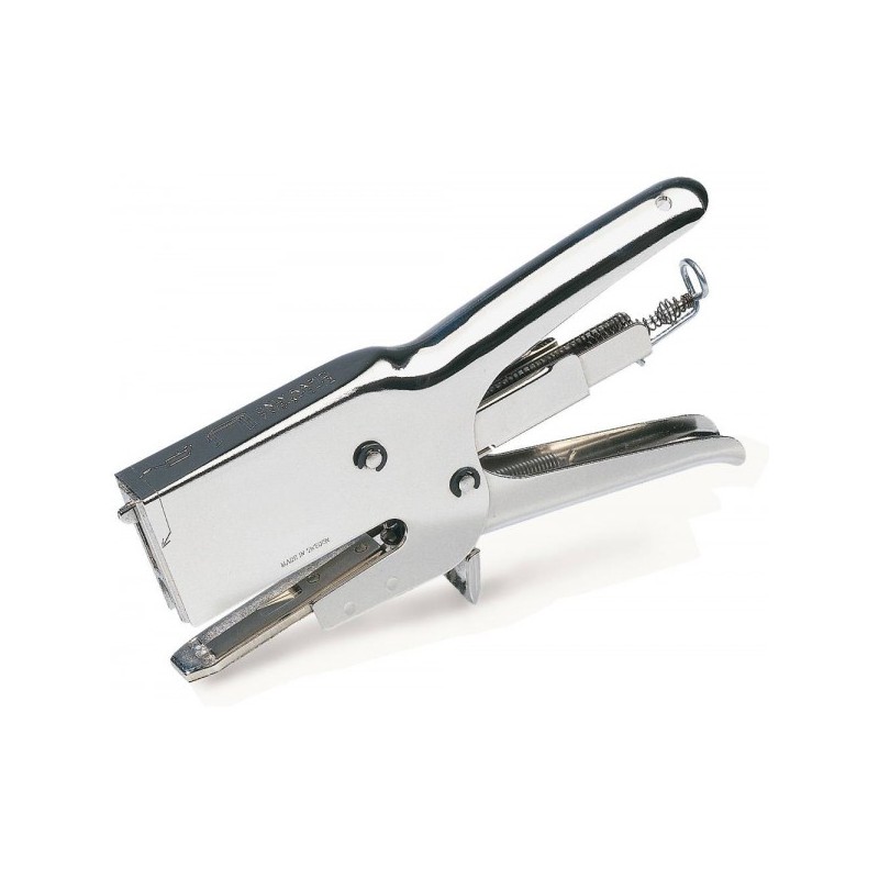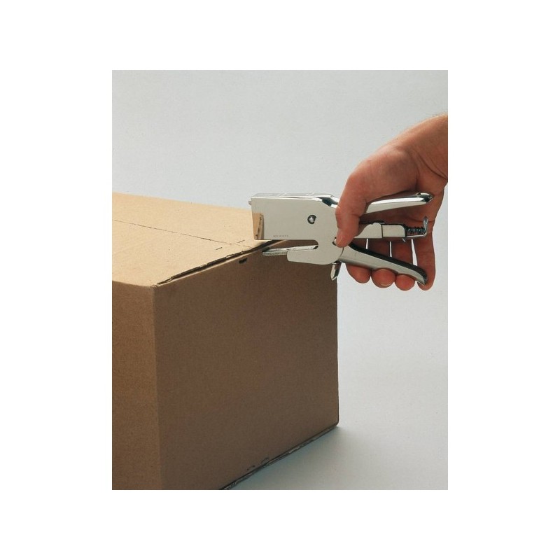 - Kann dicke und harte Materialien heften, darunter Wellpappe, Folien, Papier, Kunststoffe usw.