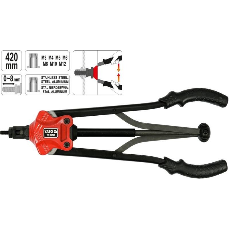 Handnietmaschine für Nietmuttern M3–M12 der Marke YATO YT-36125.