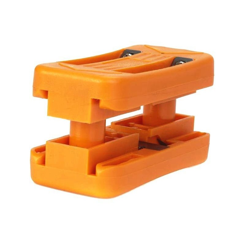 Setzen Sie den Trimmer auf das zu bearbeitende Material, drücken Sie die Enden des Werkzeugs zusammen, stellen Sie den gewünschten Schnittbereich zwischen 13 mm und 40 mm ein und schieben Sie ihn dann in die durch den Pfeil angegebene Richtung – fertig!