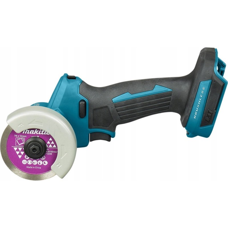 Die kompakte Akku-Säge 18 V Makita DMC300 zeichnet sich durch ihre kompakten Abmessungen und ihr geringes Gewicht aus, was sie zum idealen Werkzeug für kleine Arbeiten macht, die hohe Präzision erfordern. Die Säge ist mit einer Scheibe mit einem Durchmesser von 76 mm ausgestattet, die von einem bürstenlosen Motor angetrieben wird und eine Drehzahl von 20.000 U/min erreicht. In Verbindung mit dem System zur Aufrechterhaltung einer konstanten Drehzahl unter Last sorgt das Werkzeug für eine erhöhte Arbeitseffizienz. Ein weiterer Vorteil ist die Möglichkeit, die Drehrichtung mithilfe eines praktischen Schalters auf Vorwärts- oder Rückwärtslauf umzustellen. Die kompakte Maschine verfügt über Sicherheitsmerkmale wie eine Bremse, die ein nahezu sofortiges Anhalten des Sägeblatts ermöglicht. Das AFT-System (Active Feedback Technology) sorgt für einen Drehzahlstopp, sobald eine plötzliche Verlangsamung oder ein Stillstand der Scheibe erkannt wird. Darüber hinaus verfügt das Werkzeug über ein System, das ein Wiedereinschalten bei Stromausfall verhindert. Um die Staubentwicklung während des Betriebs zu minimieren, ist das Gerät mit einer Sägeblattabdeckung mit Staubabsaugung und Schnitttiefenverstellung ausgestattet. Die Makita DMC300 lässt sich dank ihres geringen Gewichts und ihrer kompakten Abmessungen mit einer Hand bedienen. Ein weiterer Komfort ist die integrierte LED-Leuchte, die den Schnittbereich beleuchtet und über eine Nachlaufzeit verfügt. Das Werkzeug ist mit der 18-V-LXT-Li-Ionen-Akkuserie kompatibel.