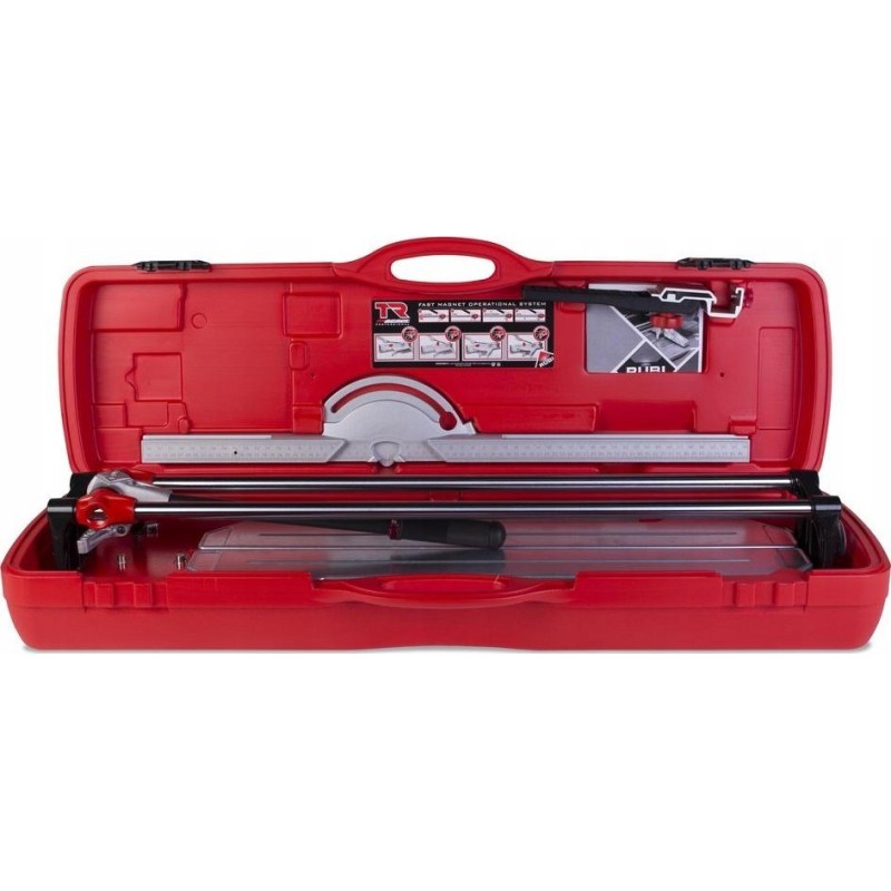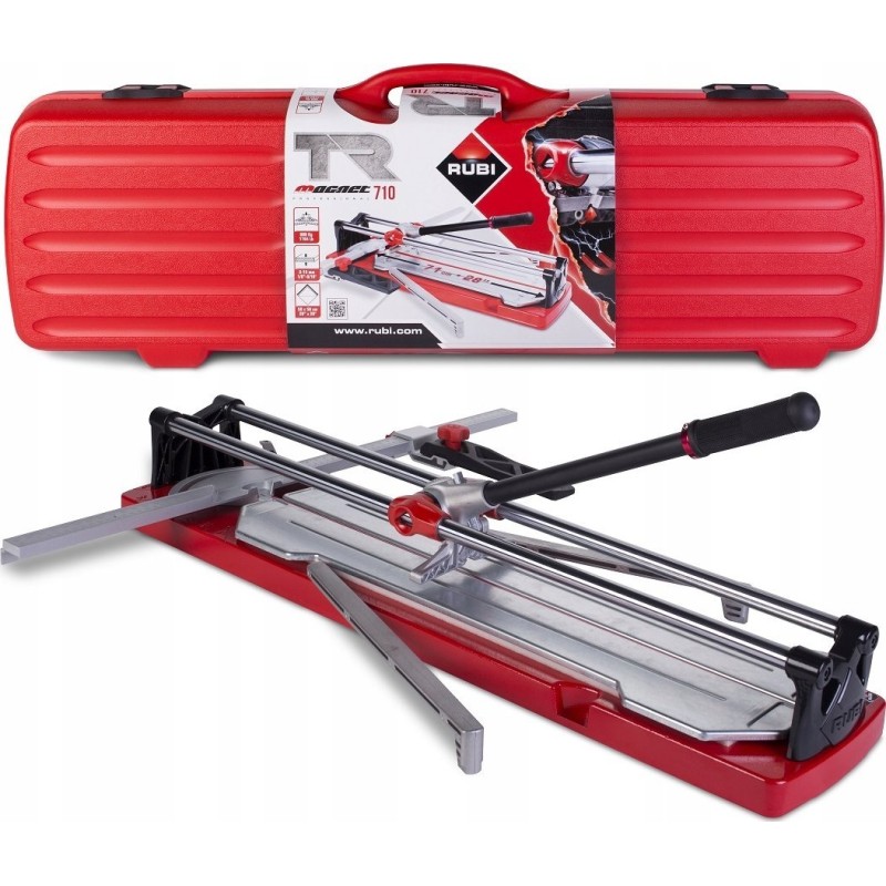 - Die Handschneidemaschinen TR-MAGNET sind mit zwei Schneidmessern ausgestattet: einem mit 6 mm Durchmesser zum Schneiden von Keramikfliesen an der Wand und einem mit 10 mm Durchmesser zum Schneiden von Feinsteinzeug- oder Steinfliesen. Ein weiteres wichtiges Merkmal der RUBI-Schneidemaschinen ist der Transportkoffer mit verstärkten Scharnieren und einem Verschluss, der den Transport und die Aufbewahrung des Geräts erleichtert
