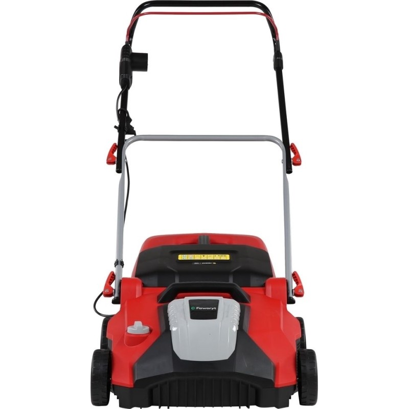 Grauer und strapazierter Rasen? Gras braucht frische Luft und Platz. Durch das Vertikutieren können Sie abgestorbene Blätter, Halme und zu stark gewachsene Graswurzeln entfernen. Der Vertikutierer/Belüfter FAWORYT KCW1800 ist ein technologisch hochentwickeltes Gerät, das nicht nur lästiges Moos entfernt, sondern auch dafür sorgt, dass das Gras üppig, dicht und grün wird. Scharfe Messer ritzen die Rasenoberfläche ein und schaffen so Spalten, durch die Wasser und Sauerstoff zu den Wurzeln gelangen. Dadurch treibt der Rasen schneller neue Triebe aus. Darüber hinaus zeichnet sich das Gerät durch eine einfache, intuitive Bedienung aus, was unter anderem auf den leichten, robusten Rahmen sowie die ergonomische und sehr einfache Handhabung zurückzuführen ist. Dank des leistungsstarken Motors ist die Arbeit mit dieser Maschine äußerst einfach. Zur Standardausstattung des Geräts gehören: