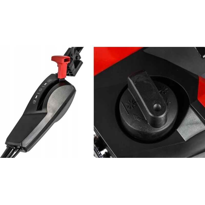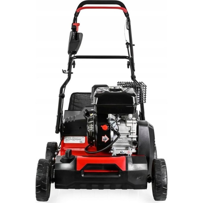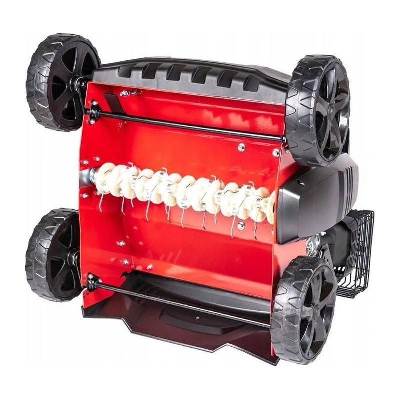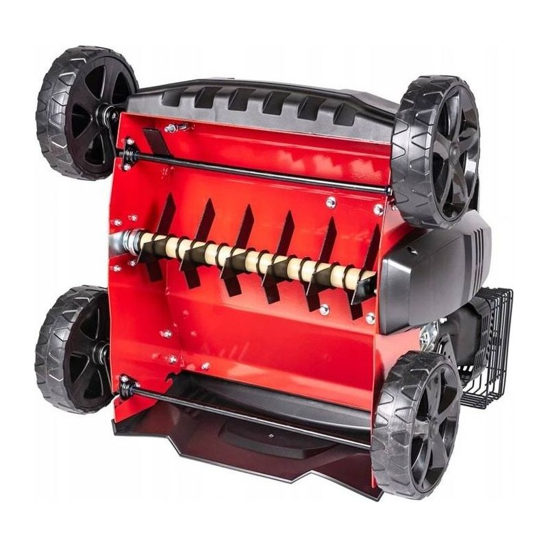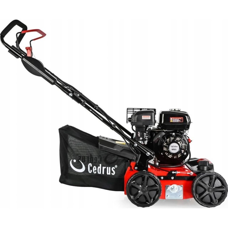Der Benzin-Vertikutierer Cedrus WR01 verfügt über eine zentrale Einstellung der Arbeitstiefe von 5 bis 15 mm. Der Vertikutierer hat einen 45-Liter-Fangkorb, kugelgelagerte Räder und einen sehr starken Motor mit einer Leistung von fast 5,5 PS.
