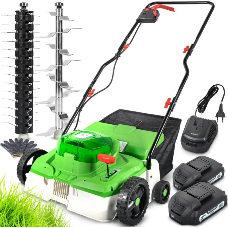 - Gerätetyp: 2-in-1-Akku-Vertikutierer (Vertikutieren + Belüften)