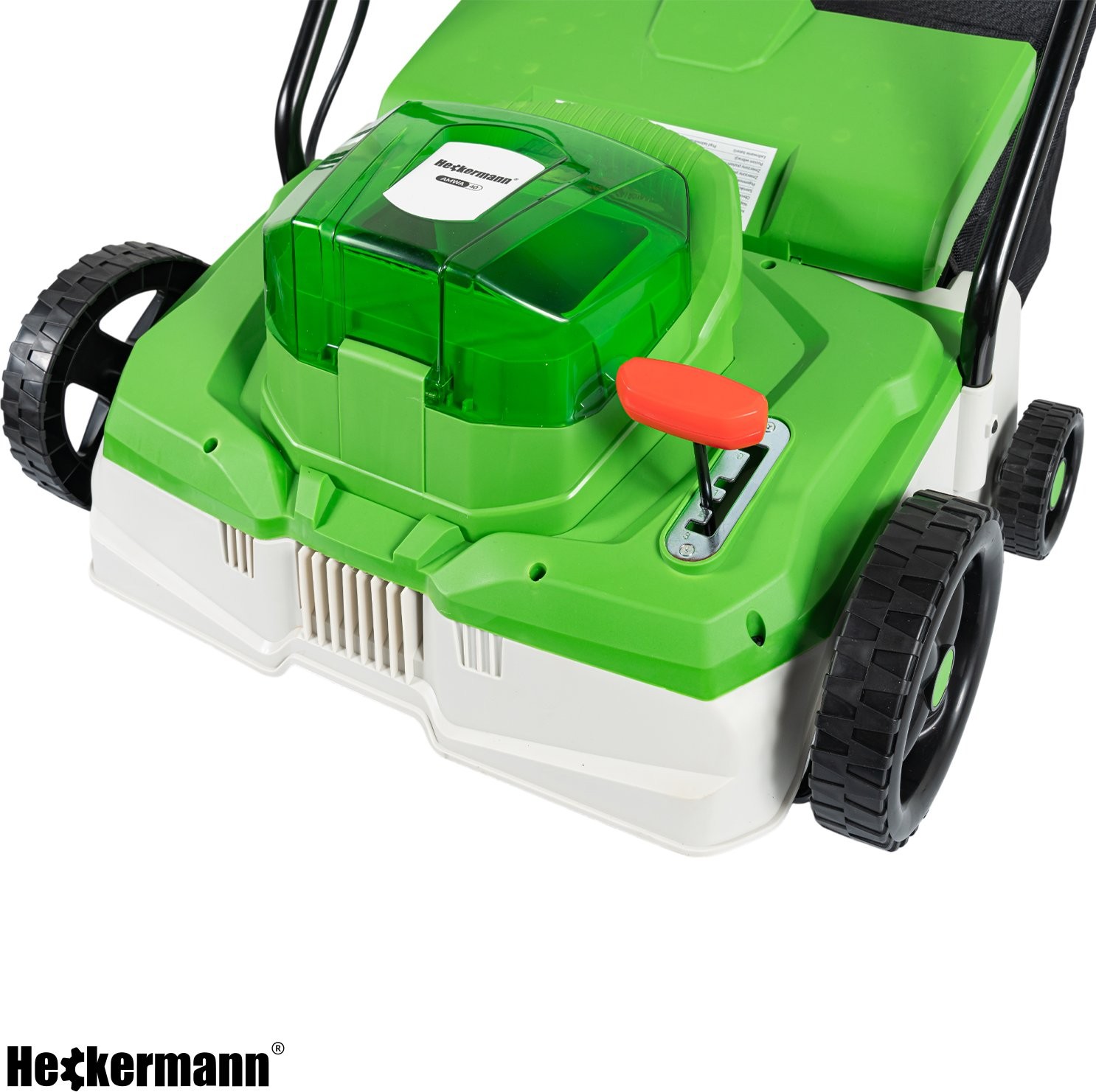 Der Akku-Vertikutierer Heckermann AMWA40 wird von einem 480-W-Motor angetrieben, der eine Drehzahl von 2700 U/min erreicht. Diese Leistung sorgt für einen effizienten Betrieb, was sich in einer schnellen und effektiven Rasenpflege niederschlägt.
