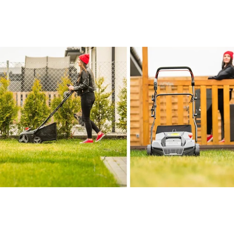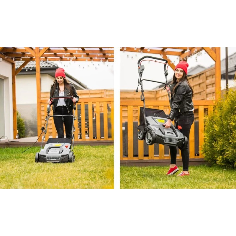 - 3-in-1-Funktion – Vertikutieren, Bodenbelüftung, Auffangen in den Grasfangkorb