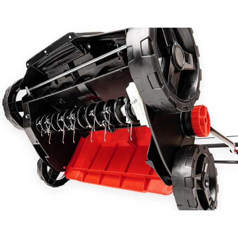 Das Gerät verfügt über eine Arbeitsbreite von 38 cm, was ein schnelles und gleichmäßiges Vertikutieren großer Rasenflächen ermöglicht. Es ist die perfekte Lösung für alle, die bei der Gartenpflege Wert auf Effizienz und Zeitersparnis legen.