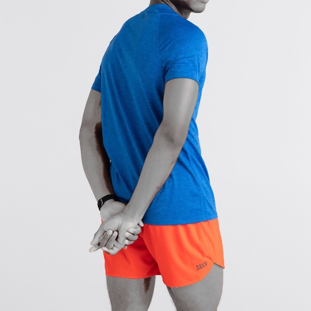 SAXX AERATOR Sport-T-Shirt für Herren, Peak Blue Wir präsentieren ein brandneues T-Shirt. Es ist dafür gedacht, überall dort getragen zu werden, wo man ins Schwitzen kommt. Das Shirt hat eine lockere Passform und besteht aus atmungsaktivem Polyester-Mesh mit Punktmuster. Es trocknet schnell und ist geruchsneutral. Ideal für das Training und an heißen Tagen.