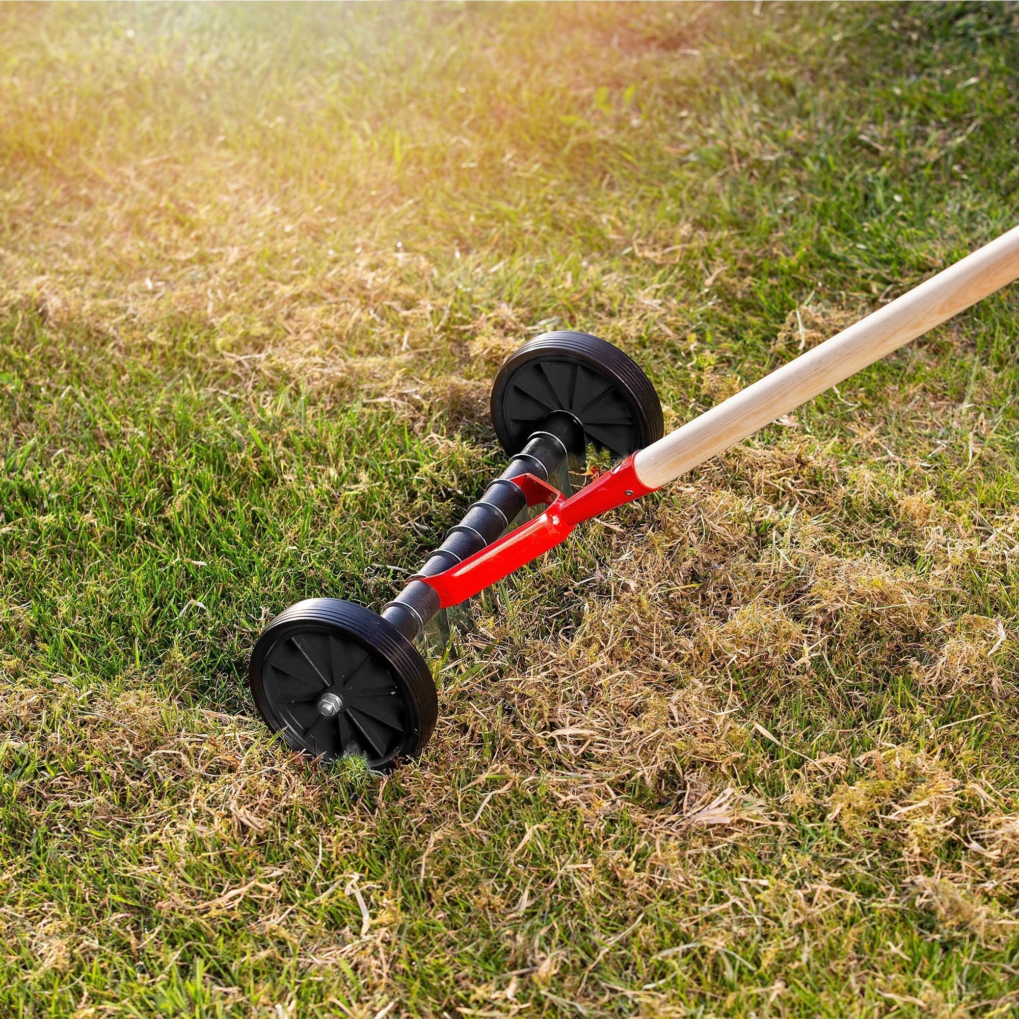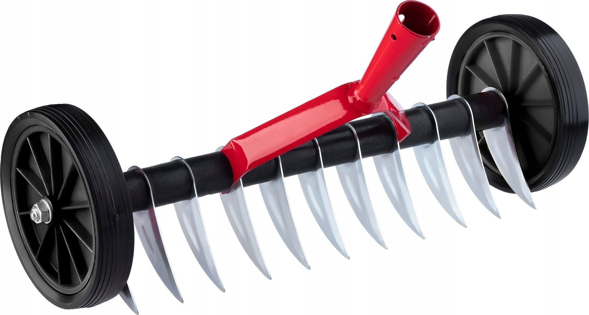 Ein praktischer einseitiger Aerator auf Rädern, der sich hervorragend zur Pflege und Verbesserung der Rasenqualität eignet. Durch den Einsatz dieses Geräts wird der Rasen schöner, gesünder und sieht gepflegter aus.
