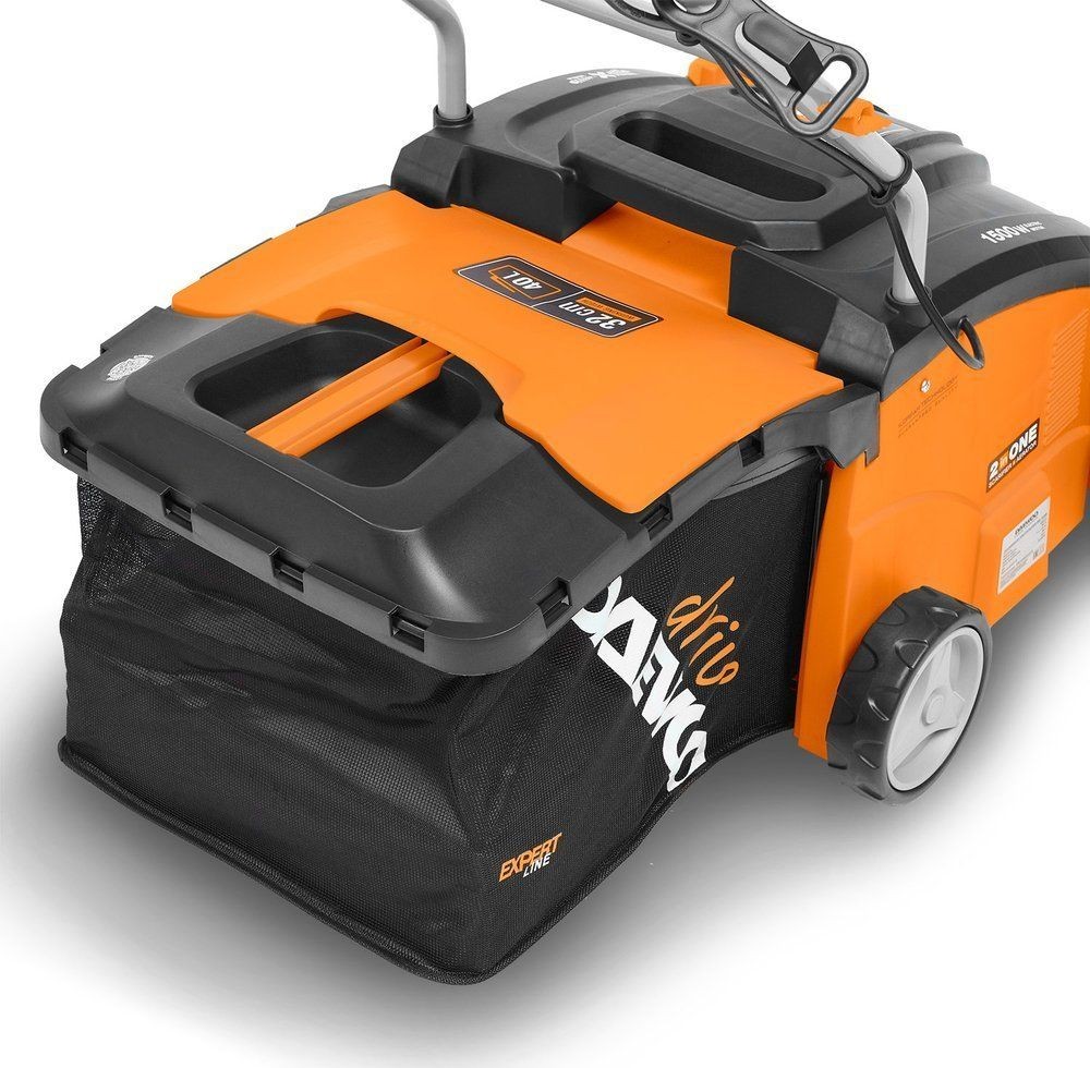 - 3 Betriebsmodi: Belüftung, Vertikutieren, Auffangen in den Grasfangkorb