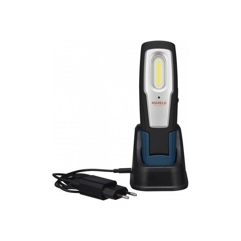 Handlampe mit integriertem Akku, besonders stoßfest. Leicht zu transportieren und aufgrund ihrer Abmessungen ideal für den Einsatz an beengten Stellen geeignet. Ausgestattet mit zwei Magneten: einem an der Rückseite und einem am Ende der Lampe. Der untere Teil ist drehbar....