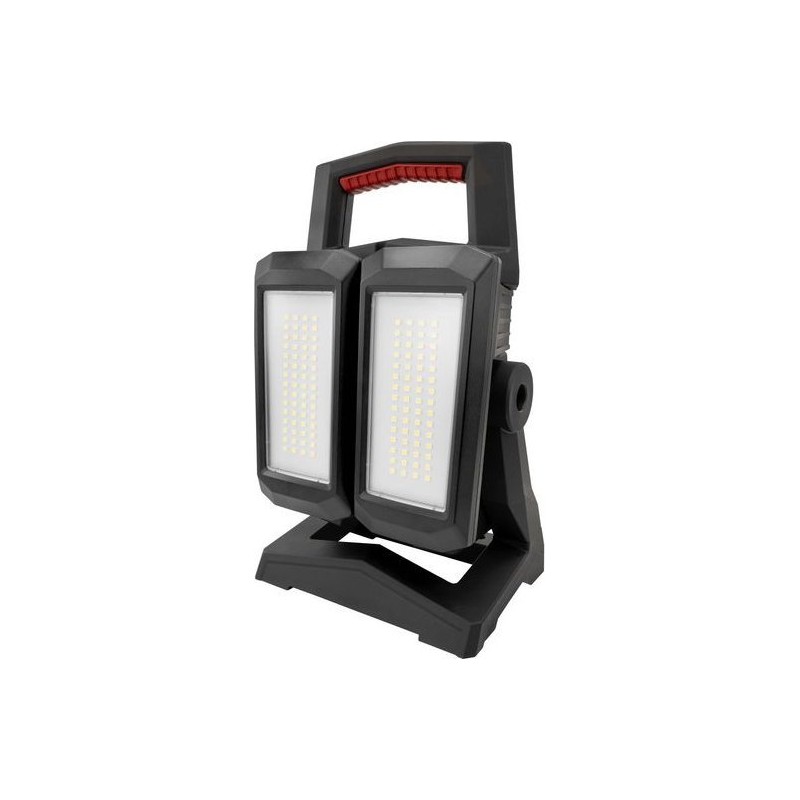 Die HS4500R-DUO ist eine professionelle Handleuchte mit austauschbarem Akku und einer Helligkeit, die in vier Stufen von 750 bis 4500 Lumen reguliert werden kann. Die 120 integrierten LEDs befinden sich in separat drehbaren Leuchteinheiten. Das Gehäuse besteht aus robustem ABS-Kunststoff und verfügt über die Schutzart IP54 gegen Feuchtigkeit sowie IK07 gegen Stöße. Der Sockel kann auch zum Aufhängen genutzt werden. Mit einer Leuchtdauer von bis zu 12 Stunden ist die HS4500R-DUO ein zuverlässiger Begleiter in der Werkstatt oder auf der Baustelle, der auch als Powerbank zum Aufladen anderer Geräte verwendet werden kann.