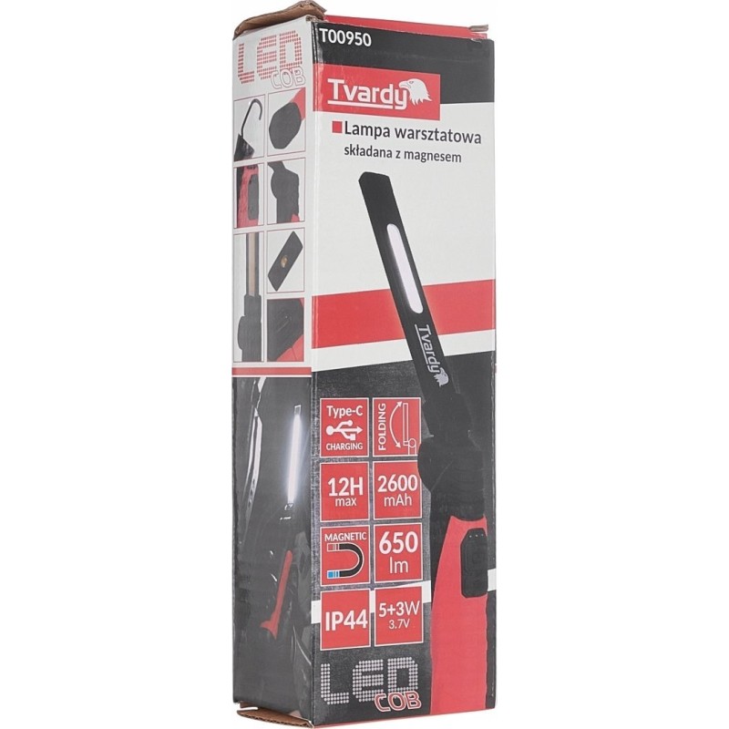 Tvardy Klappbare Werkstattlampe mit Magnet, LED COB 5 W + 3 W, 2600 mAh, 650 lm, IP44 (40)