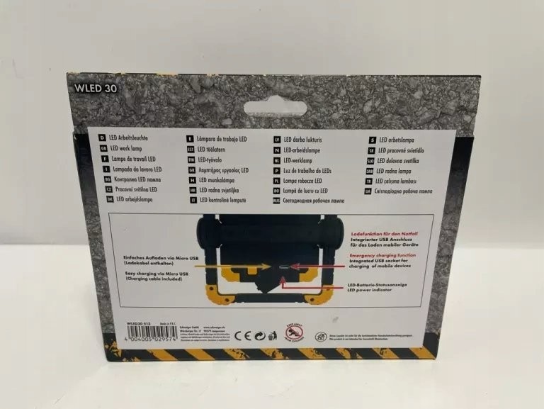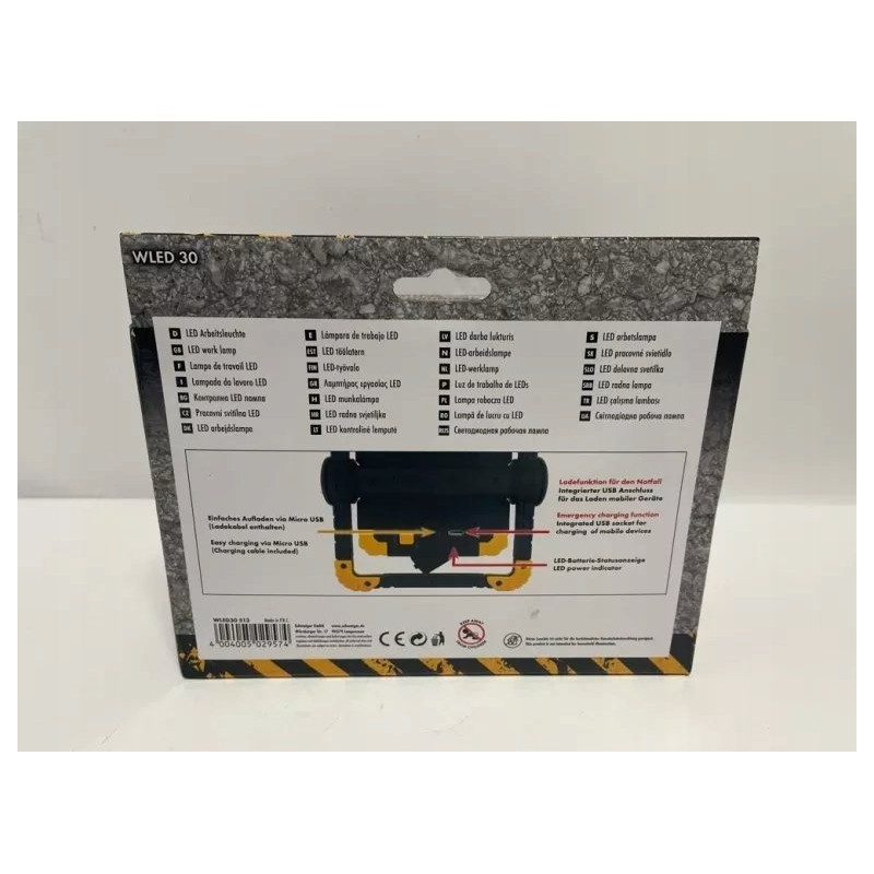 Schwaiger WLED3 0513. Produktfarbe: Schwarz, Gelb, Gehäusematerial: Acrylnitril-Butadien-Styrol-Copolymer (ABS), Thermoplastischer Kautschuk (TPR). Lichtquelle: LED, Lichtstrom: 500 lm, Lebensdauer: 5 h. Stromversorgung: Batterie. Produktbreite: 200 mm, Produkttiefe: 60 mm, Produkthöhe: 135 mm. Stückzahl pro Packung: 1 Stk.