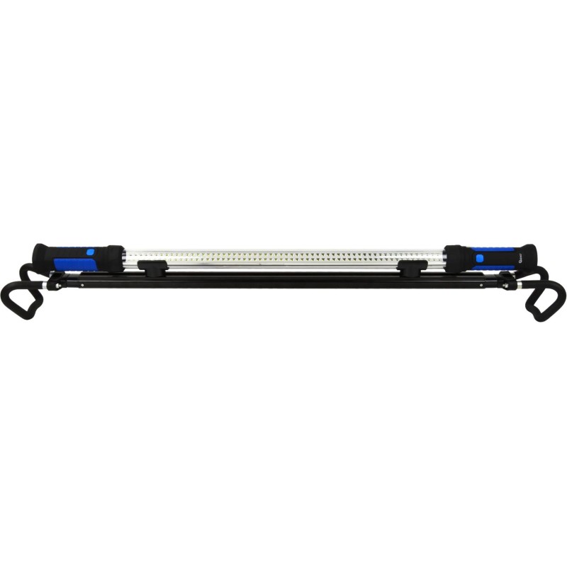 Werkstattlampe für den Motorraum mit 120 LEDs, ausziehbar von 1,2 m bis 1,95 m. Lange Lampe zur Befestigung an der Motorhaube. 120 LEDs, Leuchtkraft 13.000 lm, NiMH-Akku 7,2 V, 1.800 mAh. Lange Lampe zur Beleuchtung des Motorraums. Ausziehbarer und magnetischer Halter mit zusätzlichen Haken, an denen die Lampe aufgehängt werden kann. Die Lampe kann vom Arbeitshalter abgenommen werden. NiMH-Akku mit einer Kapazität von 1800 mAh und einer Spannung von 7,2 V. Einstellbarer Halterabstand 1,2 – 1,95 m. Betriebsdauer von 4 (120 LED) bis 8 (60 LED) Stunden. Im Lieferumfang enthalten: 230-V-Netzladegerät und Ladegerät für den 12-V-Zigarettenanzünder.