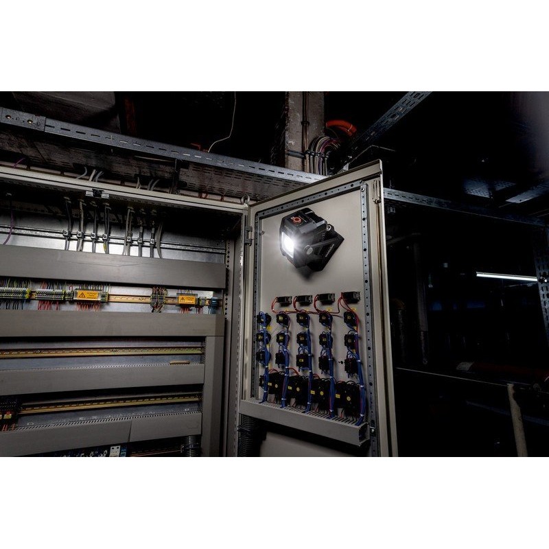 Handlicher Akku-Baustellen-Scheinwerfer mit COB-LEDs für eine fokussierte, farbgetreue Ausleuchtung, optimal in engen Räumen.