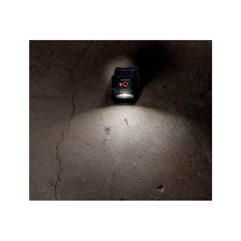 . Akkulaufzeit bei maximaler Helligkeit: 75 Minuten pro Amperestunde (Ah), z. B. 5 Stunden mit einem LiHD-Akku 18 V / 4 Ah