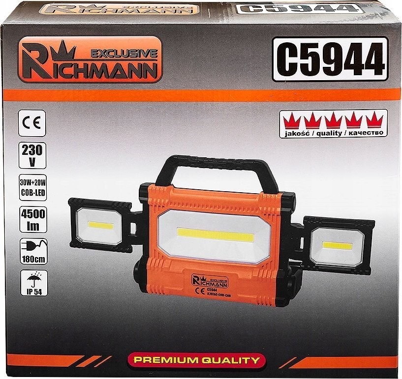 RICHMANN Halogen- und LED-Werkstattlampe 30 W + 20 W COB LED 4500 lm 230 V