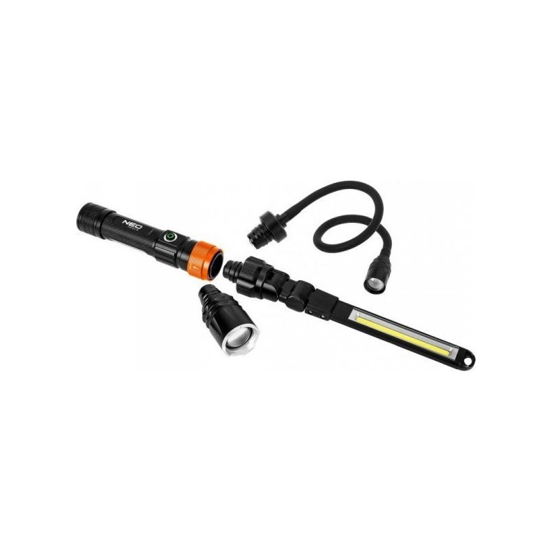 Die 3-in-1-Lampe 99-107 der Marke NEO TOOLS ist ein einzigartiges Produkt, das über drei austauschbare Köpfe verfügt: