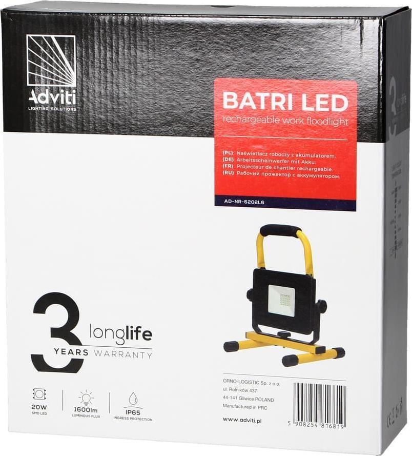 Orno BATRI LED 20 W, tragbarer Arbeitsscheinwerfer mit Akku, 1600 lm, IP65, 6500 K, 4400 mAh
