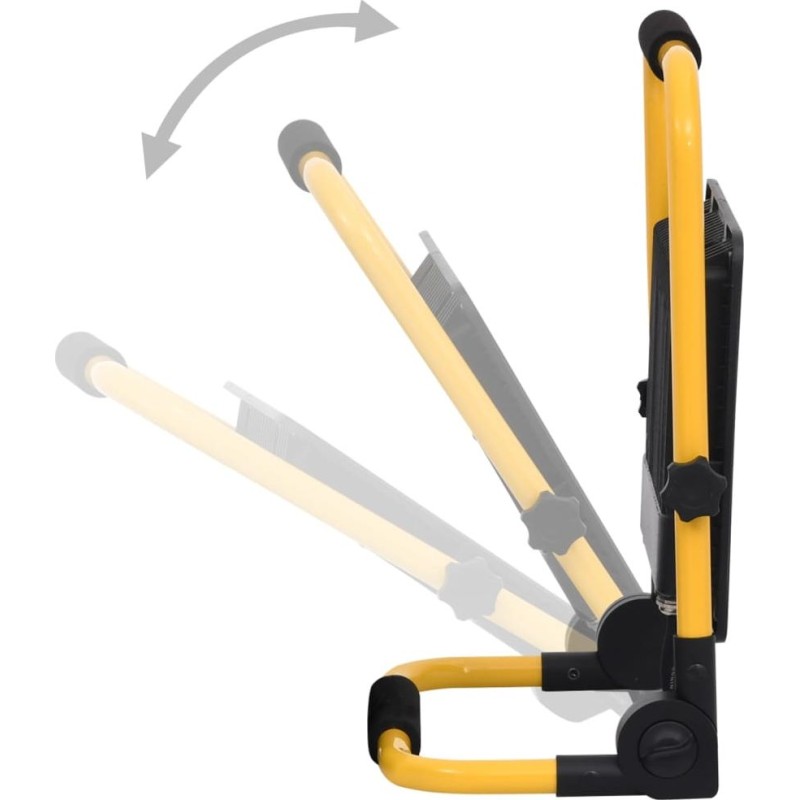 Dank des Aluminiumgehäuses und der Glasabdeckung sorgt die Arbeitsleuchte für eine gute Wärmeableitung und ist zudem leicht. Der Lichtstrom von 7000 lm und der Abstrahlwinkel von 120° sorgen für eine hervorragende Ausleuchtung. Darüber hinaus strahlt der Scheinwerfer eine Farbtemperatur von 6000 K aus, um optimale Lichtverhältnisse im ganzen Haus zu gewährleisten. Die Lampe besteht aus einem stabilen Stahlrohrrahmen mit einem ergonomischen Griff, der den Transport erleichtert. Sie lässt sich zusammenklappen, wenn sie nicht gebraucht wird. Das Produkt ist energieeffizient und bietet gleichzeitig eine lange Lebensdauer von bis zu 50.000 Stunden.