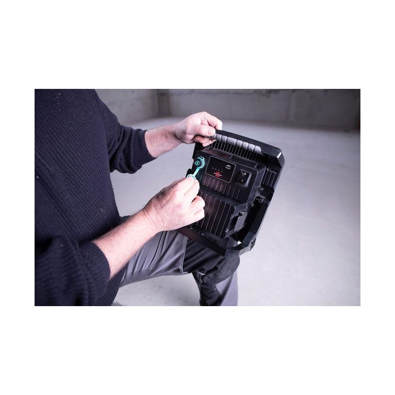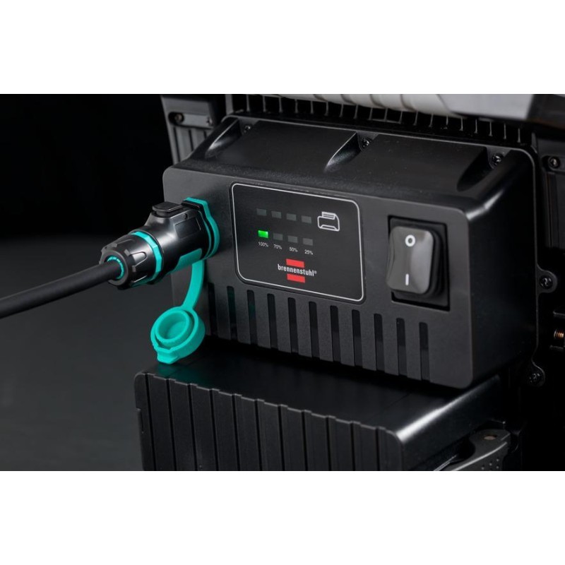 Brennenstuhl Multi Battery 18V: Der extrem robuste und helle 60-W-Multi-Battery-LED-Hybrid-Scheinwerfer ist kompatibel mit 38 verschiedenen 18-V-Akkus (verschiedene Ah-Größen) von fünf führenden Elektrowerkzeugherstellern: Bosch Professional, Makita, Dewalt, Milwaukee und Metabo CAS. Unabhängig davon, welches Akkusystem bereits verwendet wird, sorgt das Adaptersystem für verschiedene Akkus für maximale Flexibilität und die Möglichkeit, den gewünschten Akkutyp wiederzuverwenden. Der passende Adapter (im Lieferumfang enthalten) lässt sich mit einem Handgriff in die Schnittstelle einstecken. Dank der Hybridtechnologie kann der schlagfeste Arbeitsscheinwerfer mit integrierten COB-LEDs sowohl über Akku als auch über das 230-V-Wechselstromnetz betrieben werden. Selbst bei einem Stromausfall sorgt der LED-Scheinwerfer für Sicherheit durch die automatische Umschaltung von Netz- auf Akkubetrieb. Darüber hinaus verfügt er über eine Akku-Statusanzeige, die über die verbleibende Energie der verwendeten Akkus informiert (die Akkus müssen extern geladen werden), sowie über das Power-Tool-Akku-Schutzsystem. Dieses schützt die Akkus vor Tiefentladung und Überhitzung. Der LED-Scheinwerfer Multi Battery verfügt darüber hinaus über folgende beeindruckende Eigenschaften: