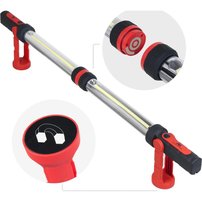 Zwei Lampen mit superhellen COB-LEDs eignen sich ideal für die Werkstatt, die Garage sowie für Reparaturen und Heimwerkerarbeiten zu Hause. Die neue Generation superheller COB-LEDs mit einer Lebensdauer von bis zu 100.000 Stunden gewährleistet einen sehr langen und störungsfreien Betrieb.Dank der COB-LED-Technologie (LED-Streifen) liefert die Lampe im Vergleich zu herkömmlichen Lampen deutlich mehr Licht und ist dabei wesentlich sparsamer. Die Lampen lassen sich mithilfe der integrierten Magnete miteinander verbinden, sodass eine große Werkstattlampe mit einem sehr hellen Lichtstrom von 1200 Lumen entsteht! Für hohen Bedienkomfort sorgt die Möglichkeit, die Lampen sowohl mit den eingebauten Magneten an Metalloberflächen zu befestigen als auch an drehbaren Haken aufzuhängen, beispielsweise unter der Motorhaube eines Autos. Die Lampen verfügen über eingebaute Lithium-Ionen-Akkus mit einer Kapazität von 2000 mAh. Voll aufgeladene Akkus reichen für 2 Stunden Betriebszeit. Im Lieferumfang ist ein USB-Ladegerät samt Ladekabel enthalten. EAN: 5902211111849 Garantie: 24 Monate Herstellergarantie Lieferantencode: MCE230 Typ: Schreibtischlampe Lichtquelle: LEDs Im Lieferumfang enthalten: USB-Ladegerät Ladekabel Bedienungsanleitung Originalverpackung Kaufbeleg Farbe: Rot